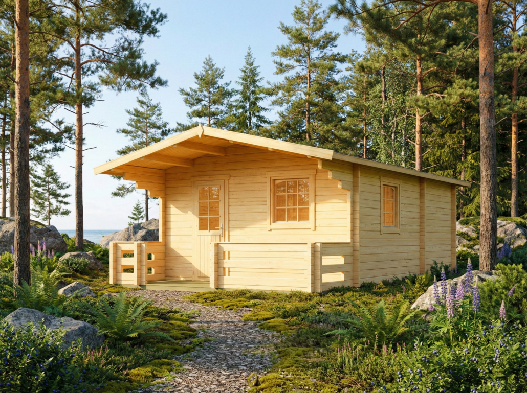 - Painekyllästetty alusrunko, lattianiskat ja terassilauta (jos terassi kuuluu pakettiin)