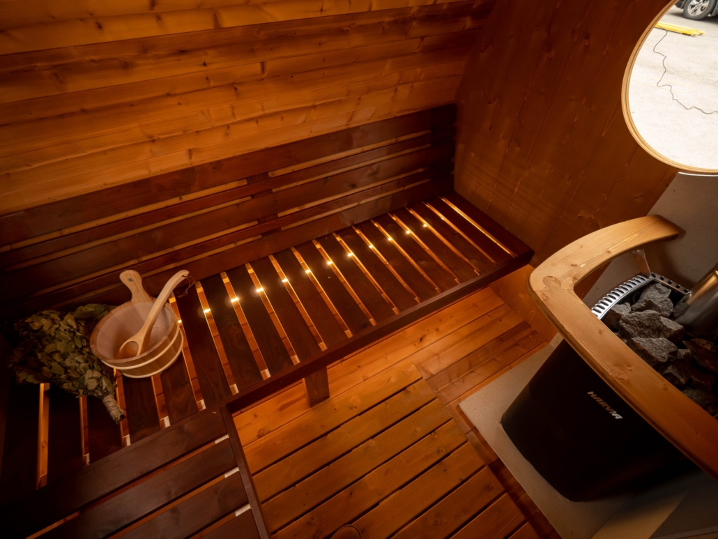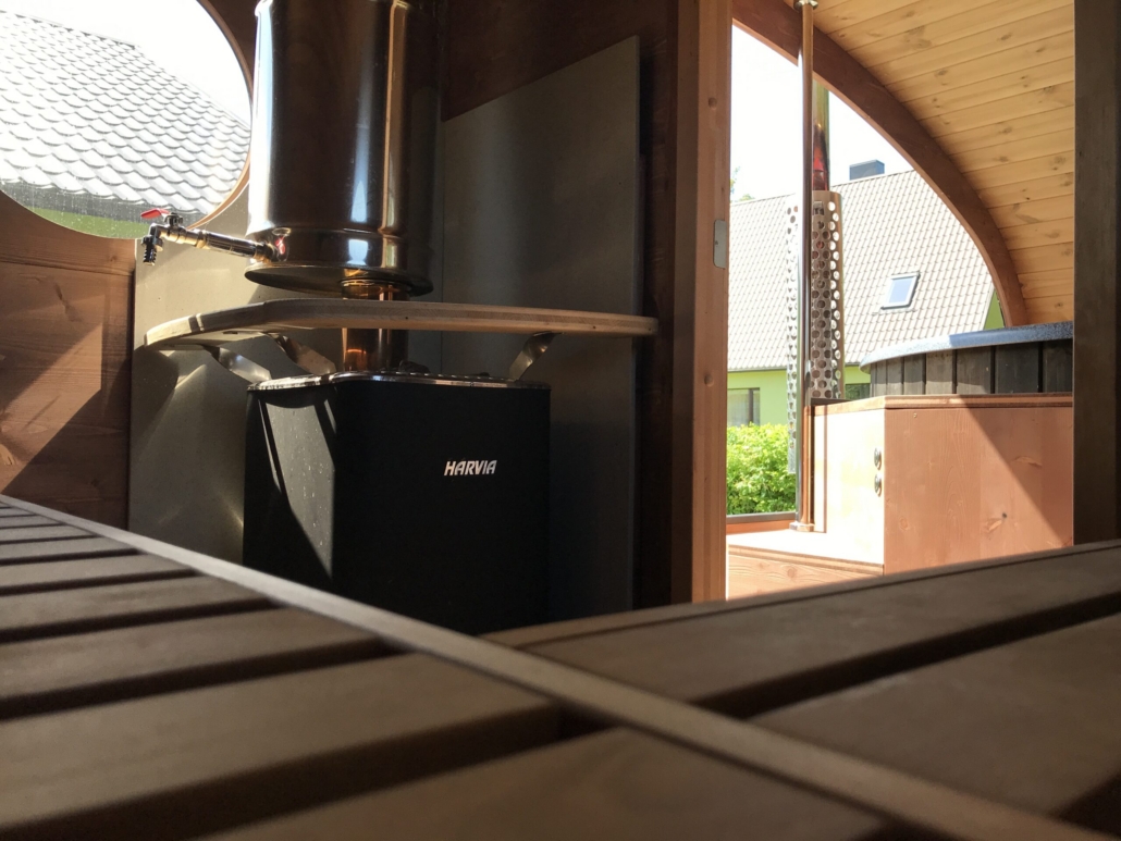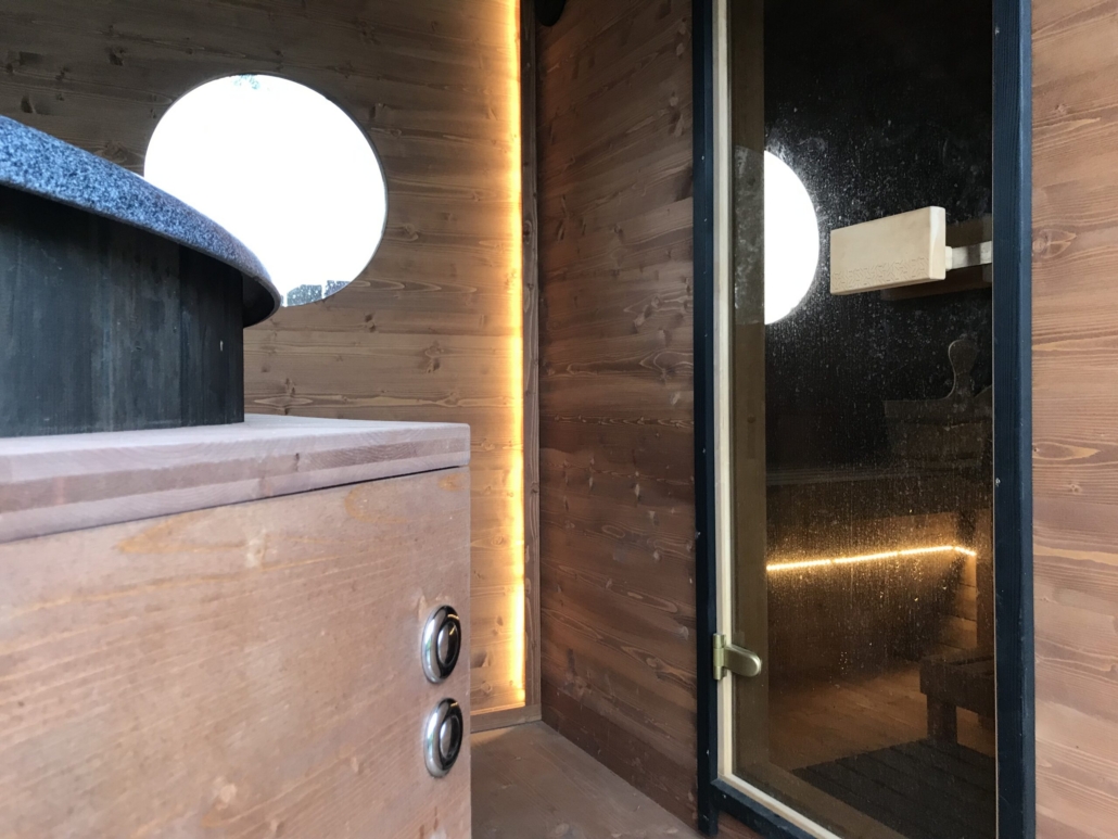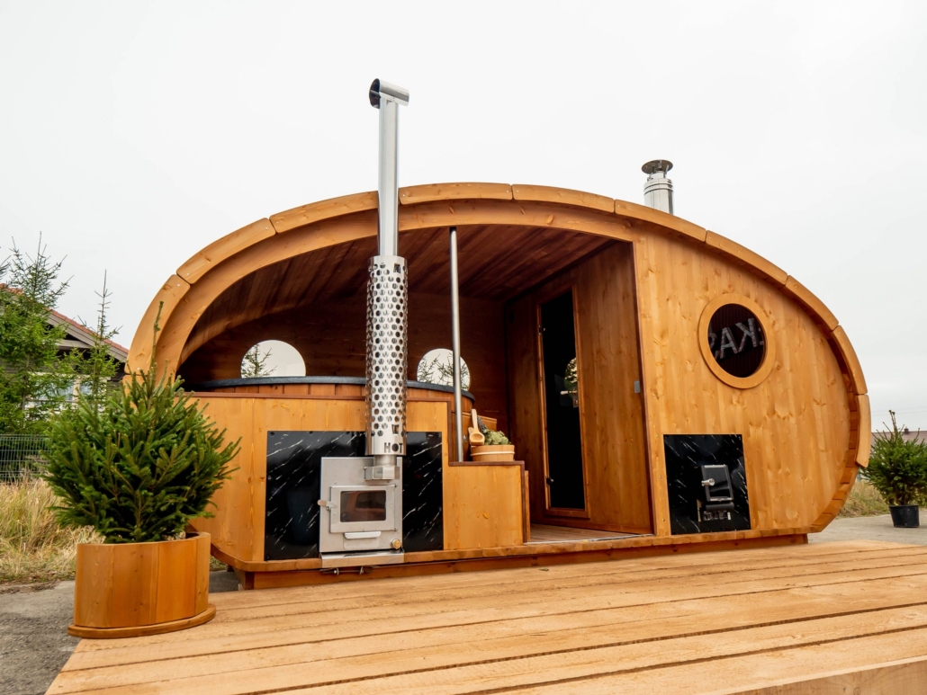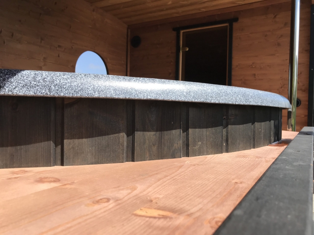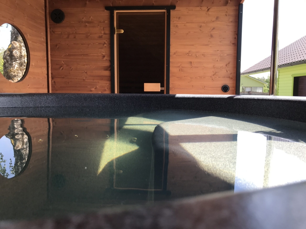 Корпус SaunaSPA сделан из термодревесины, она остается приятно теплой и лучше всего сохраняет древесину в нашем климате.