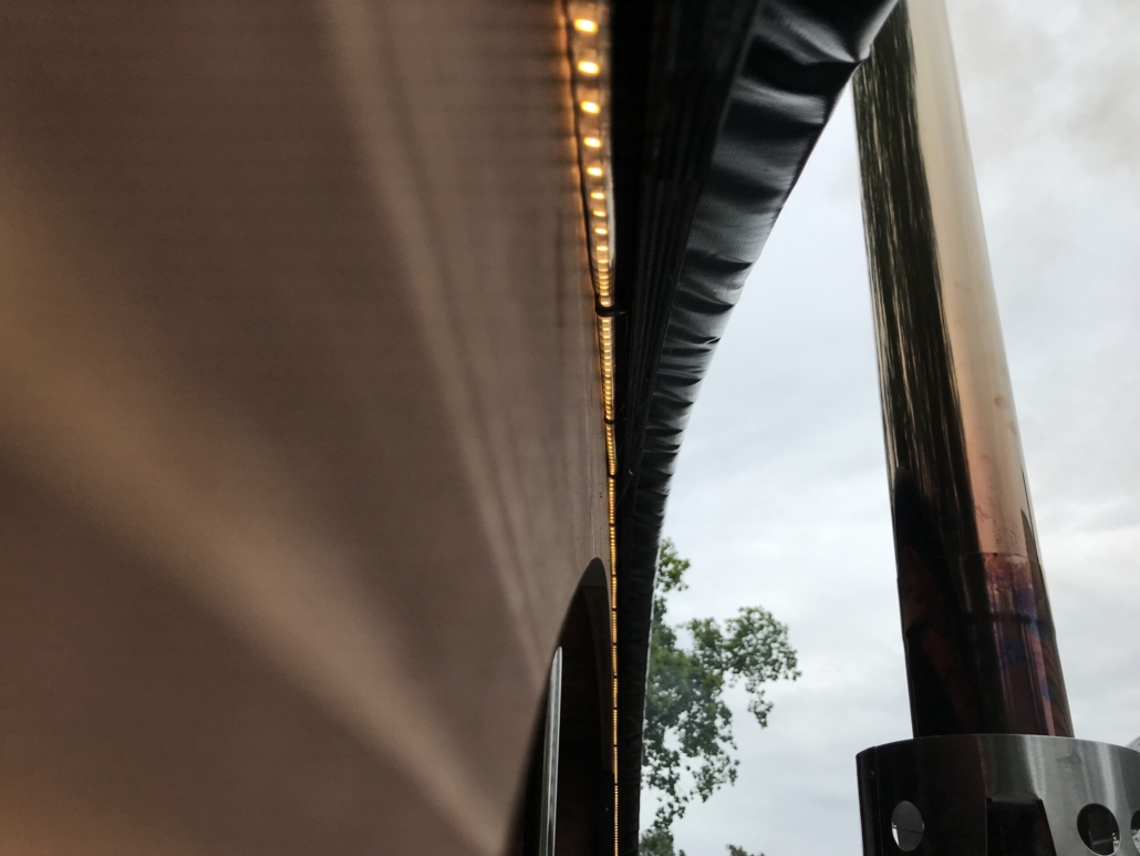 3 круглых окна в задней стенке и 1 круглое окно в передней стенке из закаленного бронзового стекла. Толщина стекла 4 мм, диаметр 520 мм.